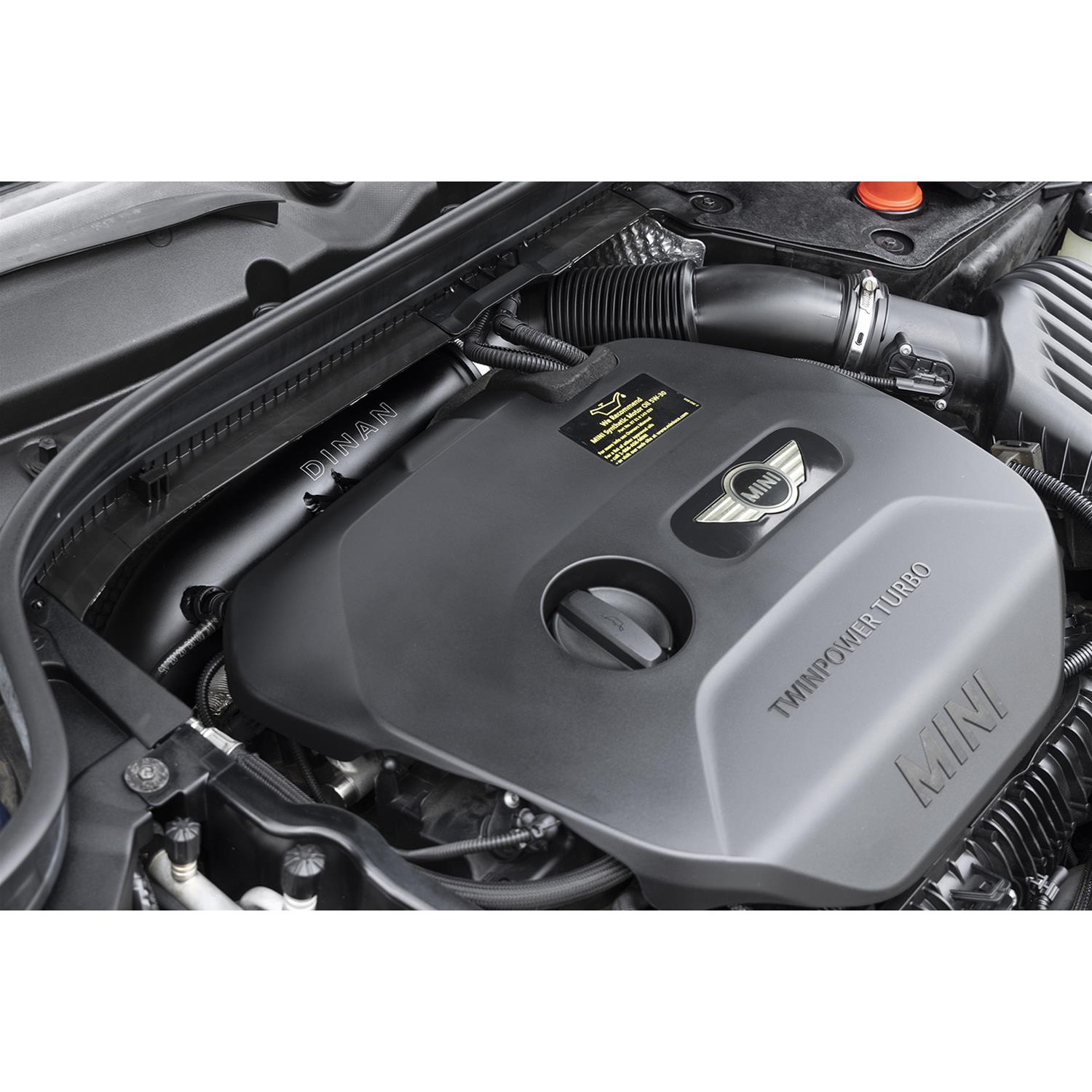 - Larger diameter smooth-bore aluminum piping (Dinan: 76mm; OEM: 70mm) for improved airflow and minimization of pressure-drop